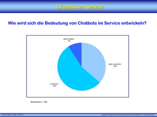 Die Umfrage des x [iks] Instituts für Kommunikation und Servicedesign untersucht die Rolle von Chatbots im Service, wobei 91% der Befragten eine Zunahme der Nutzung erwarten. Die häufigsten Anwendungsbereiche sind Kundeninformationen, Produktberatung und Bestellungsabwicklung, während Herausforderungen wie Integration und emotionale Intelligenz identifiziert werden. Die Umfrage zeigt auch, dass der Einsatz von Chatbots Unternehmen bei der Optimierung von Abläufen und Kostensenkung unterstützen kann.