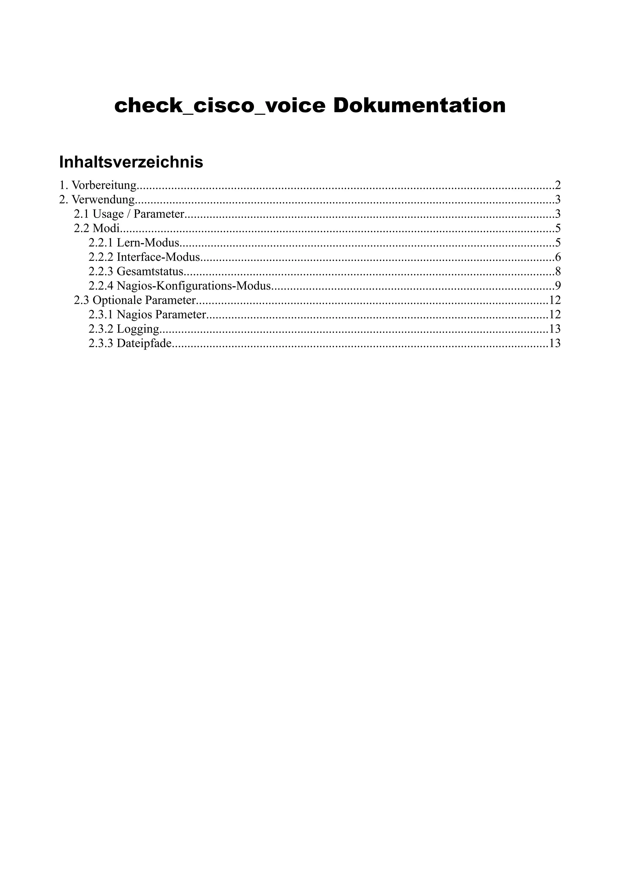 Das Dokument beschreibt die Verwendung des Skripts check_cisco_voice, das die Überwachung von Cisco-Sprachschnittstellen ermöglicht. Es erklärt die Vorbereitung zur Ausführung des Skripts, die verschiedenen Modi (Lernmodus, Interface-Modus, Gesamtstatus und Nagios-Konfigurationsmodus) sowie die verfügbaren Parameter und Optionen. Zudem werden Beispiele für die Nutzung gegeben und Vorschläge zur Anpassung von Log-Dateien, Timeout-Settings und anderen Konfigurationsparametern angeboten.
