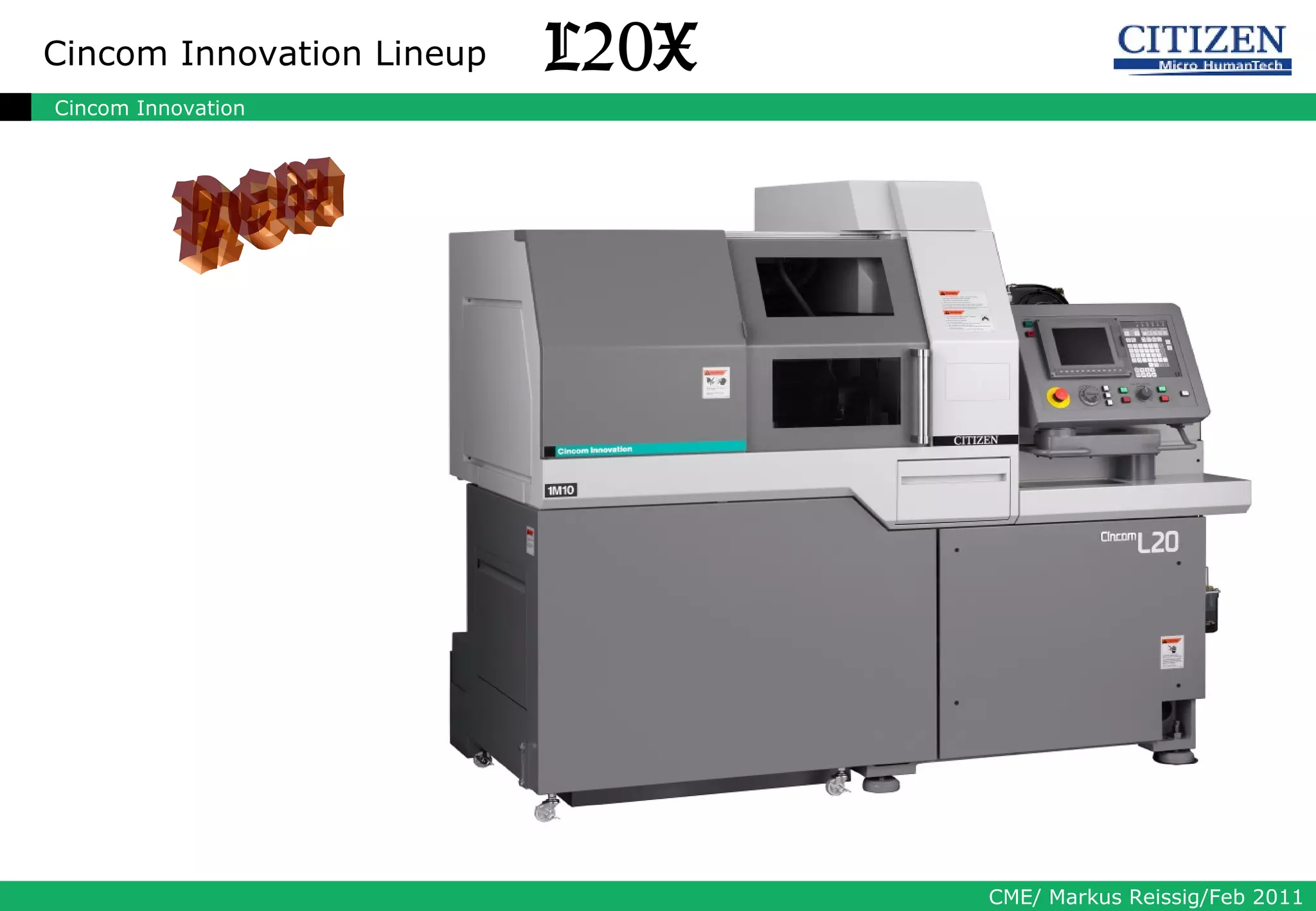 Das Dokument beschreibt innovative Merkmale der Maschine L20x, einschließlich einer zusätzlichen Y-Achse, einer Vielzahl von Werkzeuganordnungen und verbesserter simultanbearbeitung für die Vorder- und Rückseitenbearbeitung. Hervorgehoben werden auch die Hauptspindel mit hohen Drehzahlen und verschiedene Werkzeughalterungen für diverse Bearbeitungsarten. Insgesamt wird die Reduzierung der Bearbeitungszeiten durch gleichzeitige Bearbeitung und verbesserte Stabilität betont.