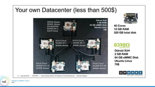 Das Dokument beschreibt eine Architektur für Clickstream-Analyse mit Spark, um das Besucherverhalten in Echtzeit zu verstehen. Es wird eine effiziente Datenverarbeitungslösung präsentiert, die auf einer Kombination von Streaming- und Batch-Verarbeitung basiert und mehrere Dimensionen zur Analyse von Benutzerdaten und Konversionen umfasst. Die Architektur beinhaltet auch eine robuste Fehlerbehandlung und hohe Durchsatzraten, um eine interaktive Abfrage von Daten zu ermöglichen.