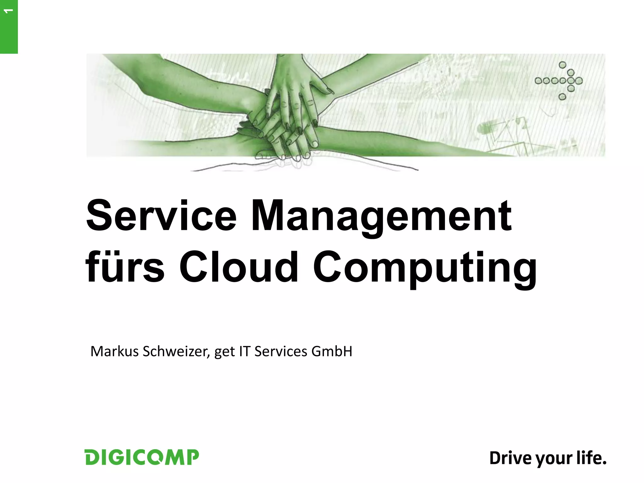 Das Dokument behandelt das Thema Service Management im Kontext von Cloud Computing, vorgestellt von Markus Schweizer, einem Experten auf diesem Gebiet. Es beschreibt die Evolution von IT-Organisationen in Richtung einer dienstleistungsorientierten Struktur und die Herausforderungen und Möglichkeiten, die Cloud Computing für das Service Management mit sich bringt. Zudem werden wichtige Überlegungen zur Gestaltung von IT-Services, einschließlich der strategischen, operativen und organisatorischen Aspekte, thematisiert.