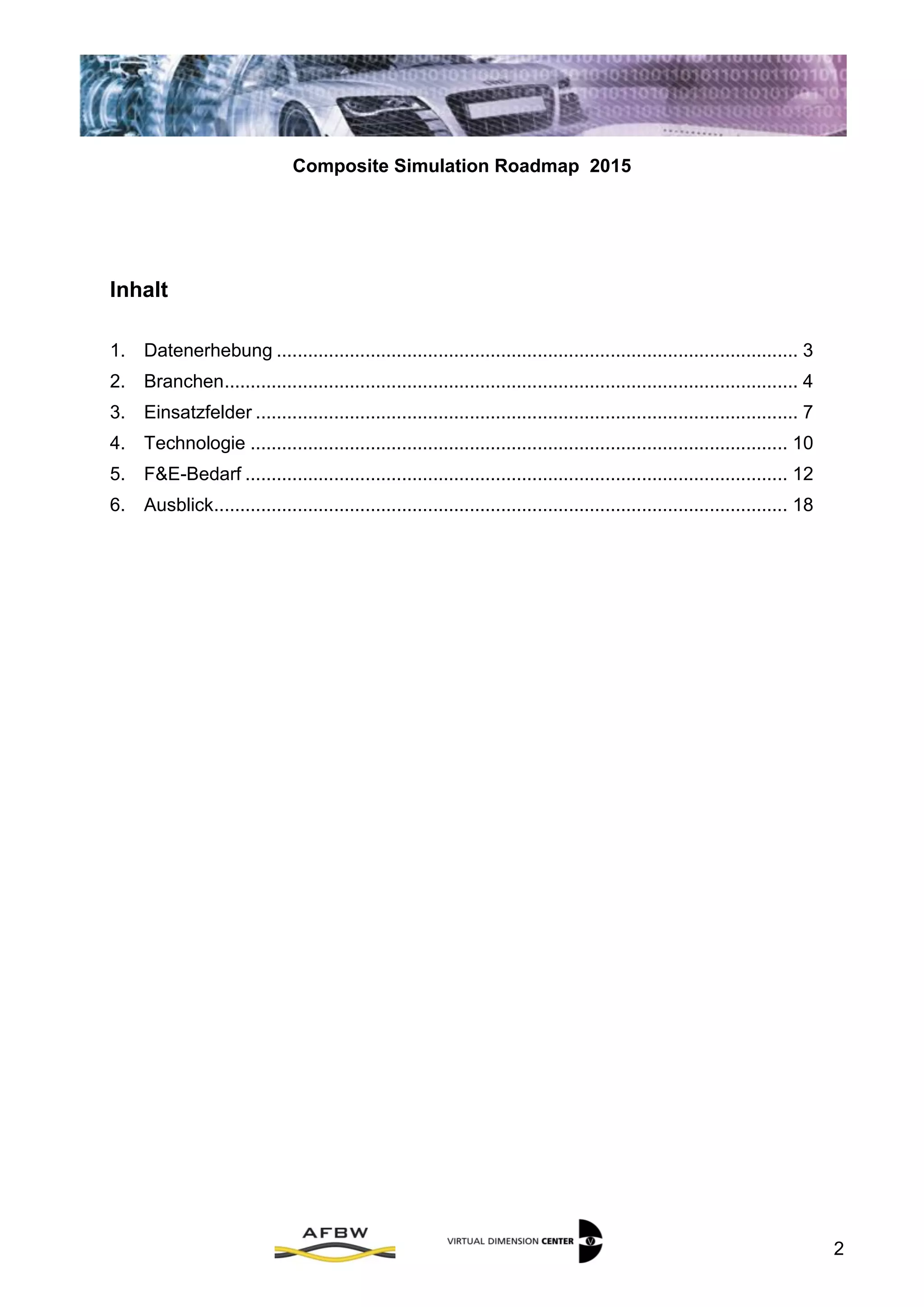 Die Composite Simulation Roadmap 2015 identifiziert zentrale Anwendungsfelder und Technologien für die Simulation von Composites, wobei die Automobil- und Luftfahrtindustrie eine hohe Bedeutung haben. Es besteht ein erheblicher Forschungs- und Entwicklungsbedarf in Bereichen wie Materialmodelle und Versagensmechanismen, während die Forschungslandschaft dynamisch ist und sich von oligopolartigen zu polypolaren Strukturen entwickelt. Zukünftige Arbeiten und Analysen werden im Rahmen des Industriearbeitskreises fortgeführt, um die Entwicklung der Composite-Simulation weiter voranzutreiben.
