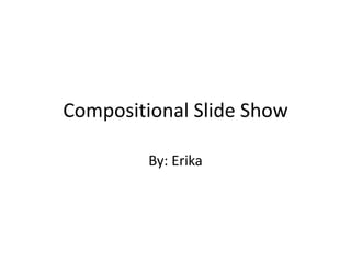 Das Dokument behandelt die grundlegenden Prinzipien der Komposition in der Fotografie, wie die Regel der Drittel, Linien, Balance und das Vermeiden von Verschmelzungen. Es zitiert mehrere Quellen von Erika Ewert, die auf Flickr veröffentlicht wurden. Die Informationen sind auf eine Slide-Show-Struktur zugeschnitten.
