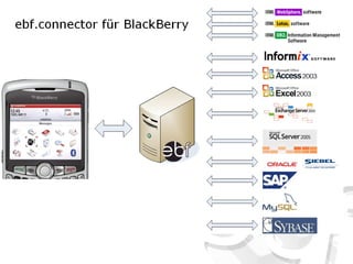 Die Version 4.5 des ebf.connectors bietet neue Funktionen wie Unterstützung für Lotus Notes-Dokumentlinks, verbesserte Benutzeroberfläche und Integration in SAP Workflows. Die Anwendung ermöglicht eine einfache mobile Datenerfassung, unterstützt verschiedene Backend-Systeme ohne Entwicklungsaufwand und bietet zentrale Administration durch offene Standards. Außerdem werden Szenarien wie Teamkalender, Qualitätskontrolle und mobile Besuchsberichte für Unternehmen dargestellt.