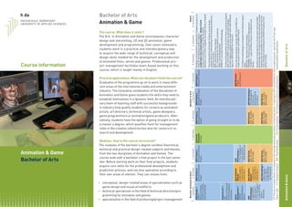 Der Bachelor of Arts in Animation und Game vermittelt über sieben Semester Kenntnisse in Charakterdesign, Storytelling, 2D- und 3D-Animation, sowie in der Spieleentwicklung und Programmierung. Absolventen arbeiten in der internationalen Medien- und Unterhaltungsindustrie oder setzen ihr Studium in einem Master fort, um Führungspositionen zu erreichen. Die Ausbildung schließt mit einem finalen Projekt ab, und die Studierenden wählen Spezialisierungen in kreativen und technischen Bereichen.