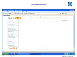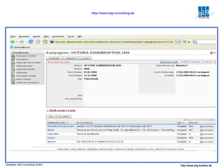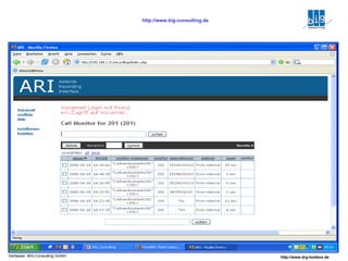 Das Dokument behandelt Customer Relationship Management (CRM) in Verbindung mit einem Inhouse-Call-Center, das Tools für Neukundenakquise, Kundenrückgewinnung und Qualitätssicherung integriert. Es hebt die Vorteile von Open-Source-Software hervor, einschließlich geringen Kosten, leichter Anpassbarkeit und Modularität, sowie die Möglichkeit, bestehende Systeme zu integrieren. Zudem wird eine innovative Marketingstrategie durch die Nutzung von Hotspots zur Zielkundengewinnung vorgestellt.