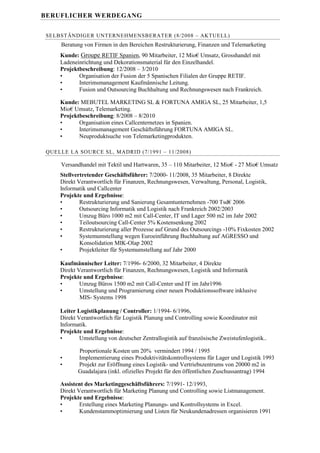 Marcel Roseeu ist ein erfahrener Unternehmensberater mit umfangreicher Ausbildung und Berufserfahrung, einschließlich Beratungen in den Bereichen Restrukturierung und Telemarketing. Er beherrscht mehrere Sprachen und hat Kenntnisse in SAP und spanischem Steuerrecht. Seit 2008 arbeitet er als selbständiger Berater, zuvor war er in verschiedenen leitenden Positionen in der Textil- und Handelsbranche tätig.