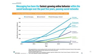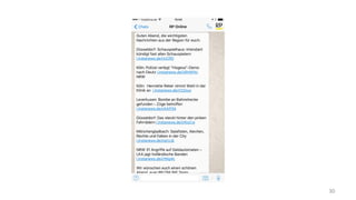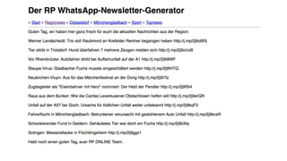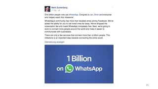 Das Dokument diskutiert die Bedeutung von WhatsApp für die Interaktion mit der Zielgruppe, insbesondere im DACH-Bereich, und hebt die hohen Öffnungs- und Klickraten hervor. Es wird empfohlen, WhatsApp als Share-Button auf mobilen Seiten zu integrieren und die Nutzerbindung mithilfe von interaktiven Formaten und neuen Kanälen wie Podcasts zu fördern. Die verschiedenen Phasen der WhatsApp-Nutzung und die Entwicklung von WhatsApp Business Accounts werden ebenfalls angesprochen.