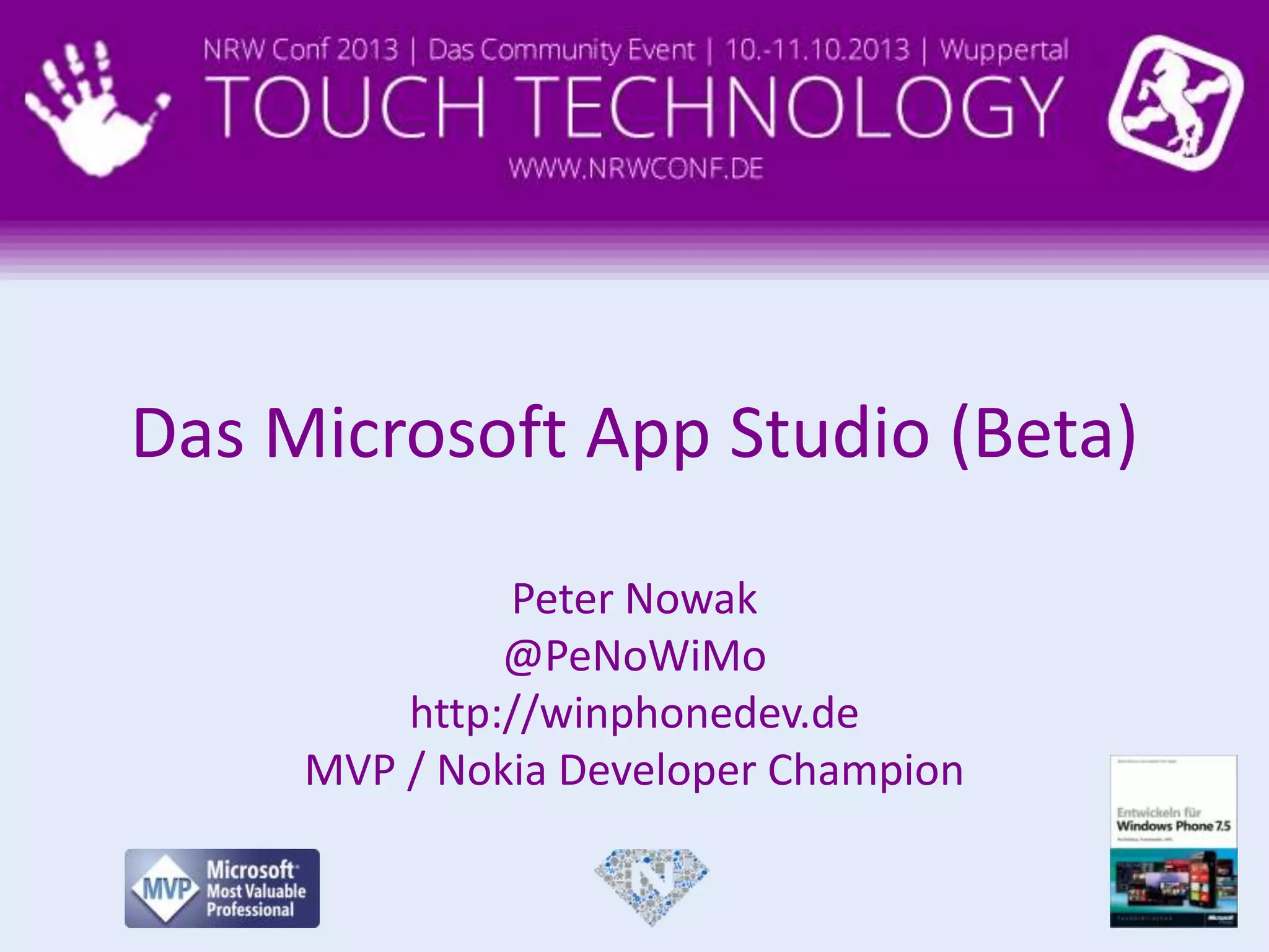 Das Dokument erläutert das Microsoft App Studio (Beta), ein webbasiertes Tool zur einfachen Erstellung von Apps, das keine tiefen Entwicklerkenntnisse erfordert. Es enthält Vorlagen für verschiedene App-Typen, ermöglicht dynamische Datenquellen und bietet den Vorteil der Sourcecode-Generierung für Anpassungen, allerdings sind einige Funktionen noch fehlerhaft und die Internetverbindung ist erforderlich. Trotz seiner Herausforderungen bietet das App Studio Potenzial für die Entwicklung von Windows 8 Apps und ist eine nützliche Lösung für Nutzer ohne Programmiererfahrung.