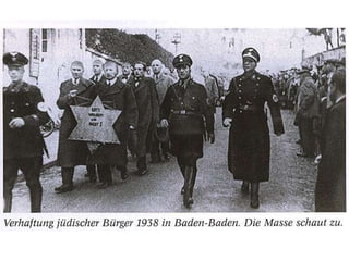 Das Dokument behandelt das NS-Wirtschaftswunder und die Ausgrenzung sowie Verfolgung der jüdischen Bevölkerung während der Nazi-Zeit, einschließlich der Kristallnacht. Es beschreibt auch das Münchner Abkommen von 1938, das zur Abtretung sudetendeutscher Gebiete an Deutschland führte, unter dem Vorwand, einen Krieg zu vermeiden, obwohl Hitler weiterhin territoriale Ansprüche geltend machte. Zudem wird auf die Allianz zwischen Deutschland und der Sowjetunion eingegangen.