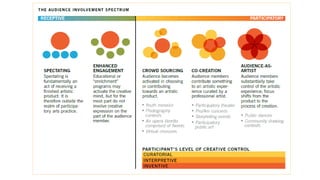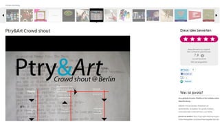 Das Dokument behandelt Crowdsourcing und Crowdfunding als innovative Modelle der Beteiligung und Projektfinanzierung, wobei Crowdsourcing als die Auslagerung von Aufgaben an eine große Gruppe von Menschen definiert wird. Es beleuchtet die Transformationsmöglichkeiten durch partizipative Ansätze in Kunst und Kultur, diskutiert die Rolle des Publikums und die Wichtigkeit von Transparenz und Mitgestaltung. Zudem wird auf verschiedene Plattformen und Projekte verwiesen, die diese Konzepte umsetzen, sowie auf ihre potenziellen Auswirkungen auf die Gesellschaft.
