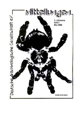 Das Dokument enthält Hinweise zur Redaktion der Vereinsnachrichten sowie Informationen zu Bestelldiensten für fehlende Ausgaben, Anzeigen und Berichterstattung über Mitgliedsaktivitäten. Es werden auch spezifische Spinnenarten wie 'Cupiennius salei' und 'Arctosa perita' vorgestellt, einschließlich ihrer Haltung, Fortpflanzung und Besonderheiten. Des Weiteren sind Hinweise zu neuen Mitgliedern und bevorstehenden Veranstaltungen des Vereins enthalten.