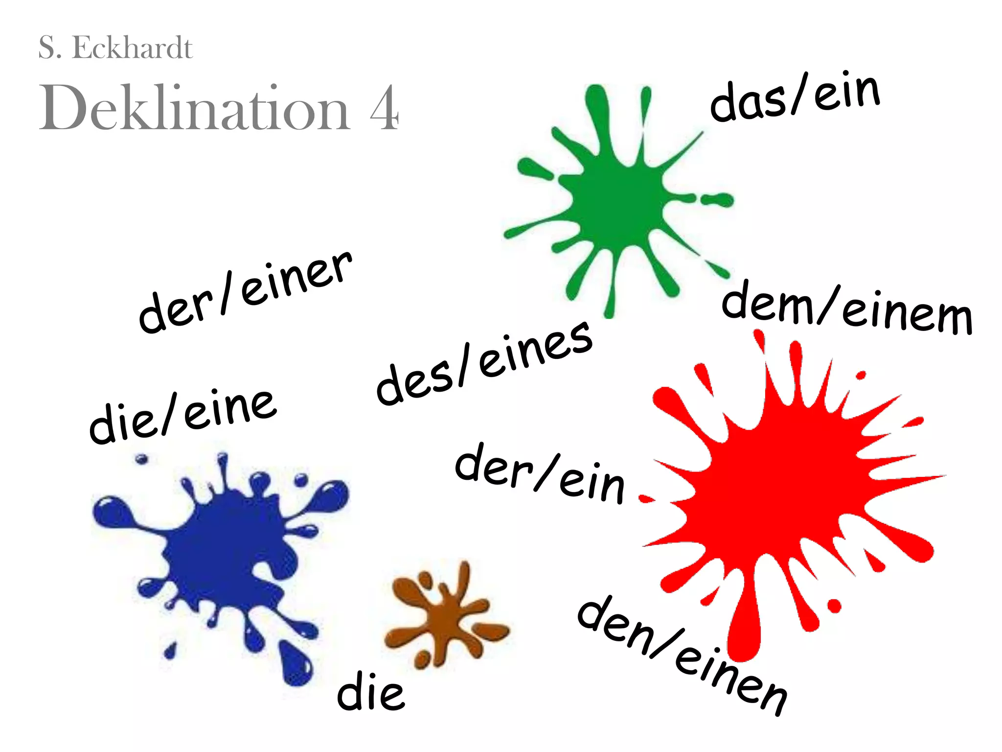 Das Dokument behandelt die Deklination bestimmter und unbestimmter Artikel im Deutschen, einschließlich ihrer Formen in verschiedenen grammatikalischen Fällen (Nominativ, Akkusativ, Dativ, Genitiv) für maskuline, neutrale und feminine Nomen. Es werden Tabellen präsentiert, die die Endungen der Artikel systematisch anordnen und veranschaulichen. Zudem wird eine wichtige Formel zur Kombination der Endungen eingeführt.