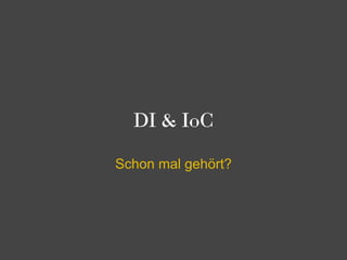 Das Dokument behandelt das Konzept der Dependency Injection (DI) im Kontext von Inversion of Control (IoC) und erläutert, wie DI als Entwurfsmuster verwendet wird, um Abhängigkeiten zwischen Objekten effizient zu gestalten. Es beschreibt verschiedene Formen der Injektion, wie Constructor und Getter/Setter Injektion, und hebt die Vorteile hervor, insbesondere in Bezug auf Testbarkeit und Flexibilität. Zudem werden Ansätze zur Implementierung von IoC-Containern vorgestellt, einschließlich der Konfiguration und Verwendung von Annotationen.