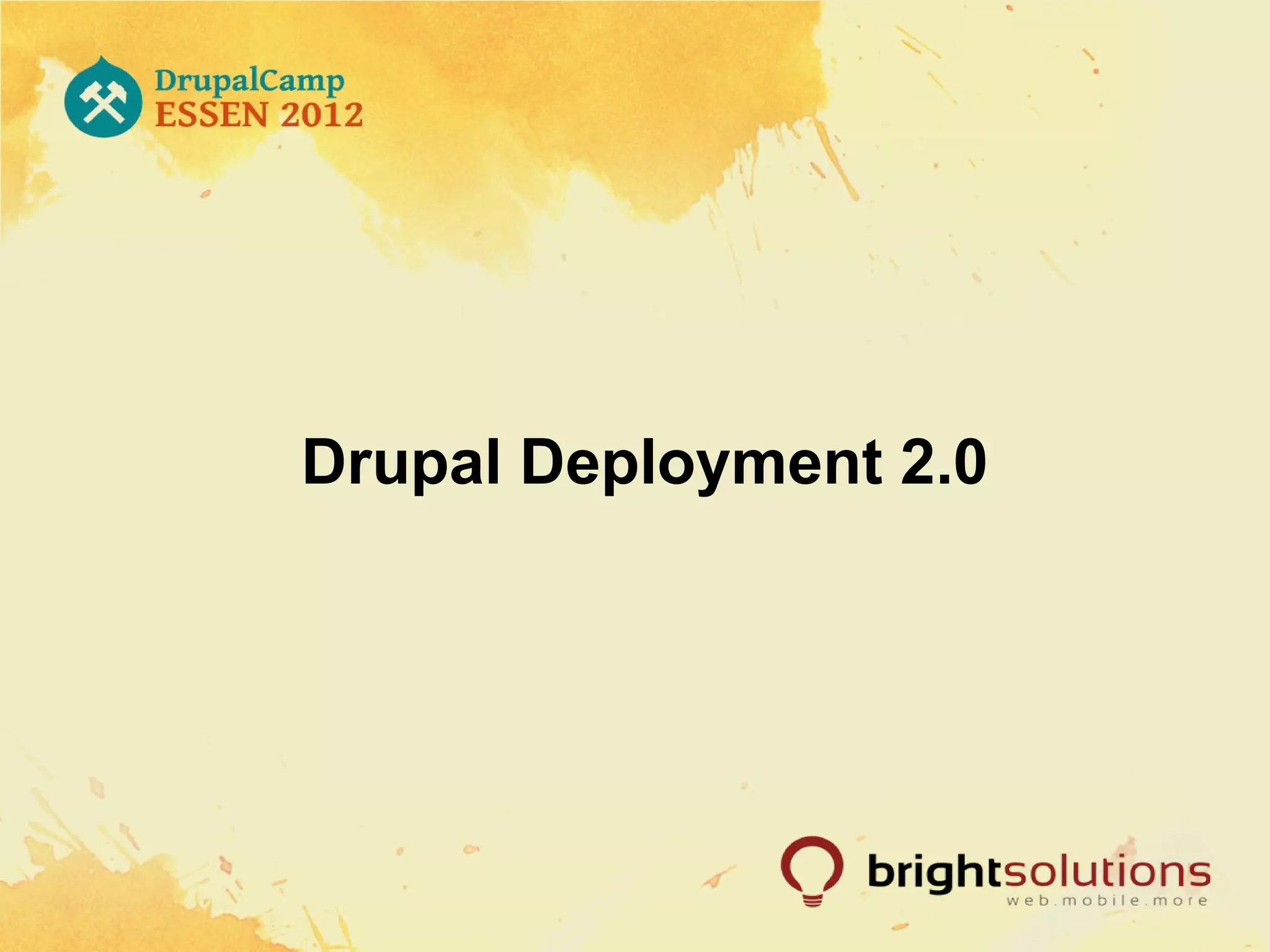 Das Dokument beschreibt den Prozess und die Tools für das Deployment von Drupal-Projekten bei Brightsolutions GmbH, einschließlich der Verwendung von Jenkins für Continuous Integration und Update- sowie Drush-Skripten für die Verwaltung von Modulen und Features. Es skizziert die Repository-Strategien, Codeanalysen und den Workflow für Entwickler und Serverupdates, wobei Automation und Minimierung von Ausfallzeiten betont werden. Außerdem wird die Bedeutung von Updateskripten hervorgehoben, um Deployment-Probleme zu lösen und sicherzustellen, dass alle Änderungen erfolgreich implementiert werden.