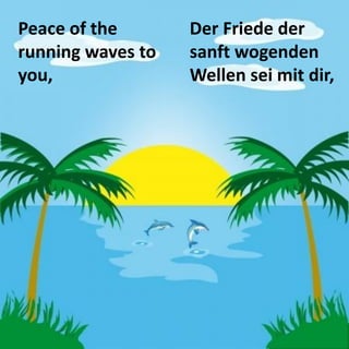 Das Dokument enthält einen traditionellen gälischen Segen, der Frieden und Harmonie von der Natur und dem Licht der Sterne sowie von Christus, dem Sohn des Friedens, wünscht. Es beschwört den Frieden der Wellen, des Windes, der Erde und der Nacht herauf. Der Segen vermittelt eine Botschaft des tiefen Friedens für den Empfänger.