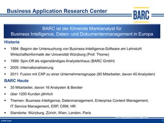 Das Dokument beschreibt die Entwicklungen und den Markt für Planungs- und Controlling-Systeme im Bereich Business Intelligence, mit einem besonderen Fokus auf die Trends und Softwarelösungen in Deutschland. Es wird berichtet, dass Excel nach wie vor das meistgenutzte Werkzeug für Planung ist, während spezialisierte Software umfassendere Funktionen bietet. Die zunehmende Konzentration auf führende Anbieter und die Notwendigkeit eines Abgleichs der eigenen Anforderungen mit dem Marktangebot werden ebenfalls hervorgehoben.