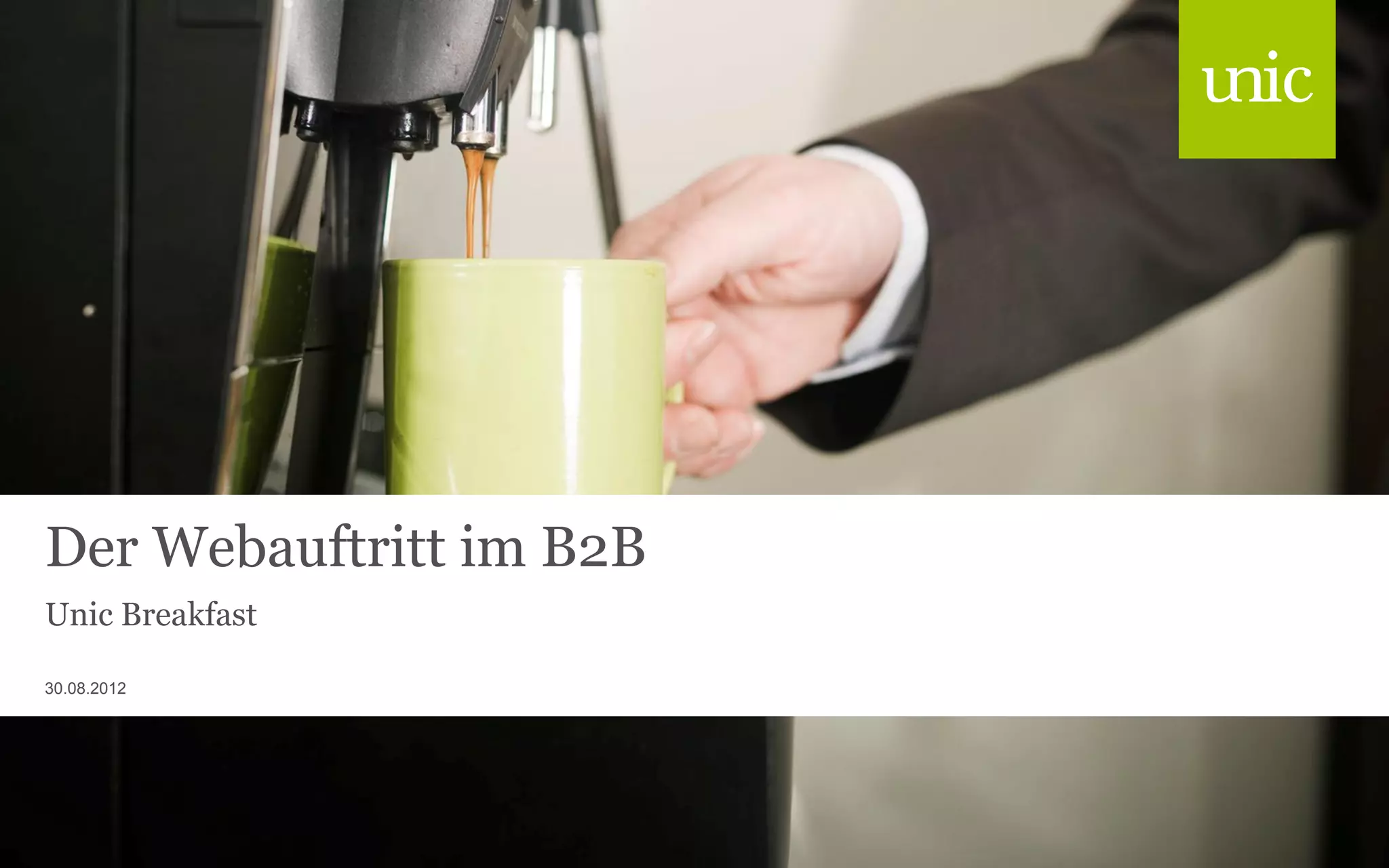 Die Unic Gruppe, gegründet 1996 in der Schweiz, bietet integrierte e-business-Lösungen an und hat sich auf E-Commerce, digitale Kommunikation und Collaboration spezialisiert. Sie sind mit 270 Mitarbeitern und einem Umsatz von 38 Millionen CHF (2011) in sieben Städten etabliert und haben zahlreiche Auszeichnungen für ihre Dienstleistungen erhalten. Das Dokument betont den Unterschied zwischen B2B- und B2C-Websites sowie die Notwendigkeit, strukturierte Daten zu nutzen, um den Kunden eine verbesserte Shopping-Erfahrung zu bieten.