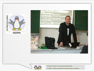 Desktop4Education und Server4Education sind Softwarelösungen, die auf freier Software basieren und speziell für Schulen entwickelt wurden, um Alternativen zu proprietären Systemen anzubieten. Die Wartung und Verwaltung erfolgt über übersichtliche Yast-Module, während die Systeme einfache Installationsoptionen und viele bereits vorinstallierte Anwendungen bieten. Zudem gibt es verschiedene Workshops und Veranstaltungen zur Förderung der Software im Bildungsbereich.