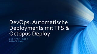 Das Dokument behandelt DevOps als Prozessverbesserungsansatz zur Effizienzsteigerung in der Softwareentwicklung und -bereitstellung, insbesondere durch den Einsatz der Tools TFS und Octopus Deploy. Es werden die Grundlagen von DevOps sowie deren Anwendung zur Automatisierung von Deployments, einschließlich der Schritte im Deployment-Prozess, beschrieben. Außerdem werden zukünftige Entwicklungsszenarien wie Cloud-Deployment und komplexe Deployment-Strategien thematisiert.