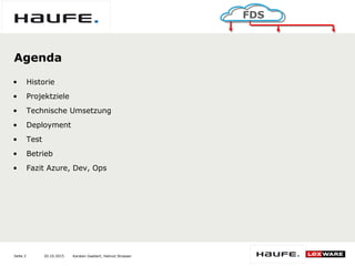 Das Dokument beschreibt die praktische Umsetzung von DevOps bei der Entwicklung und dem Betrieb einer Anwendung in Microsoft Azure, einschließlich Projektziele, technische Umsetzung und Monitoring. Es betont die Notwendigkeit von Testautomatisierung, kontinuierlicher Integration und den Einsatz von Azure-Diensten zur Effizienzsteigerung. Zudem werden Herausforderungen wie die Kostenstruktur und die betriebliche Verantwortung innerhalb des Entwicklungsteams thematisiert.