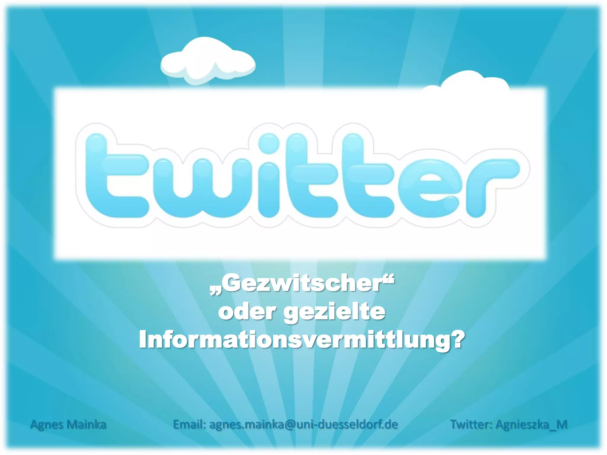 Das Dokument bietet eine umfassende Analyse von Twitter, einschließlich seiner Funktion als Microblog und Echtzeit-Informationsportal. Es enthält Nutzerstatistiken, die einen jungen, männlichen und gebildeten Nutzerkreis in Deutschland zeigen, sowie eine Untersuchung der Arten von Inhalten, die auf der Plattform geteilt werden. Zudem werden Aspekte der Aktivität politischer und kommerzieller Twitter-Accounts untersucht, einschließlich des Follower-Zuwachses und der Tweet-Aktivität.