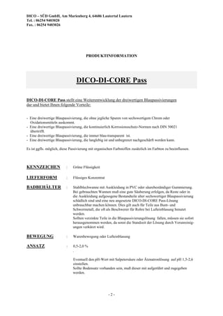 Die dico-di-core pass ist eine umweltfreundliche dreiwertige Blaupassivierung, die ohne sechswertiges Chrom auskommt und überlegene Korrosionsschutz-Standards bietet. Die Anwendung erfolgt durch Eintauchen in die Lösung bei kontrollierter Temperatur und PH-Wert, wobei die Lösung nach Gebrauch neutralisiert und sicher entsorgt werden muss. Sicherheitsvorkehrungen und geeignete Arbeitsanweisungen sind erforderlich, um Gesundheitsschäden zu vermeiden.