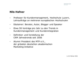 Die CRM-Trends 2016 beinhalten die Erreichung eines Produktivitätsplateaus im CRM, die Integration von Touchpoints durch Echtzeit-Komponenten und die Herausforderung kuratierter Inhalte für exzellentes Marketing und Service. Verantwortungsbewusster Umgang mit Kundendaten wird als entscheidendes Kriterium hervorgehoben. Zudem wird die Diskrepanz zwischen der Wahrnehmung des Kundenerlebnisses von CEOs und den tatsächlichen Kundenbewertungen thematisiert.