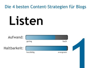 Das Dokument behandelt verschiedene Aspekte des digitalen Marketings und der Content-Strategie. Es listet die besten Strategien für Blogs, häufige Usability-Fehler, erfolgreiche Social-Media-Kampagnen, wichtige SEO-Tipps sowie verbreitete Irrtümer im Bereich Social Media und SEO auf. Die Inhalte bieten bewährte Ansätze zur Optimierung von Webinhalt und Marketingstrategien.