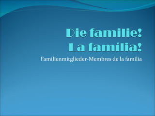 Das Dokument listet verschiedene Familienmitglieder auf, einschließlich ihrer Bezeichnungen auf Katalanisch und Deutsch. Es enthält Begriffe wie Vater, Mutter, Sohn, Tochter sowie erweiterte Familienmitglieder wie Großeltern und Onkel. Zudem werden Begriffe für Mehrlingsgeburten und spezielle Familienkonstellationen erwähnt.