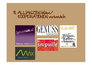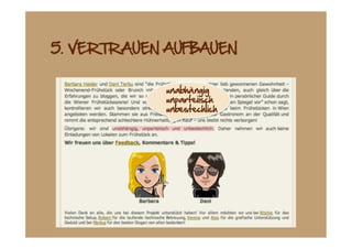 Das Dokument beschreibt die Aktivitätsstrategie des Frühstückerinnen-Blogs, die sich auf Engagement und die Bereitstellung von Community-Tools konzentriert. Es betont die Wichtigkeit, Markenwerte zu wahren und die Glaubwürdigkeit zu steigern, indem Kooperationen vermieden werden, die die Marke verwässern könnten. Zudem werden verschiedene Plattformen zur Förderung der Inhalte und Interaktion genutzt.