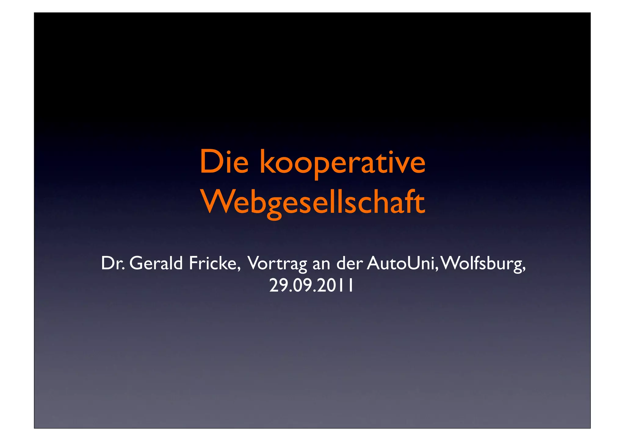 Dr. Gerald Fricke diskutiert in seinem Vortrag das Konzept der 'Webgesellschaft' und deren soziale Implikationen, die sich aus der Transformation von einer massenmedialen zu einer fragmentierten Öffentlichkeit ergeben. Er untersucht die Rolle von Kommunikation, Vertrauen und dem Einfluss von sozialen Medien auf demokratische Prozesse und individuelle Identitäten. Der Vortrag thematisiert, wie das Web als Medium sowohl als Bedrohung als auch als Chance gesehen werden kann, und plädiert für eine kooperative Haltung in der digitalen Gesellschaft.