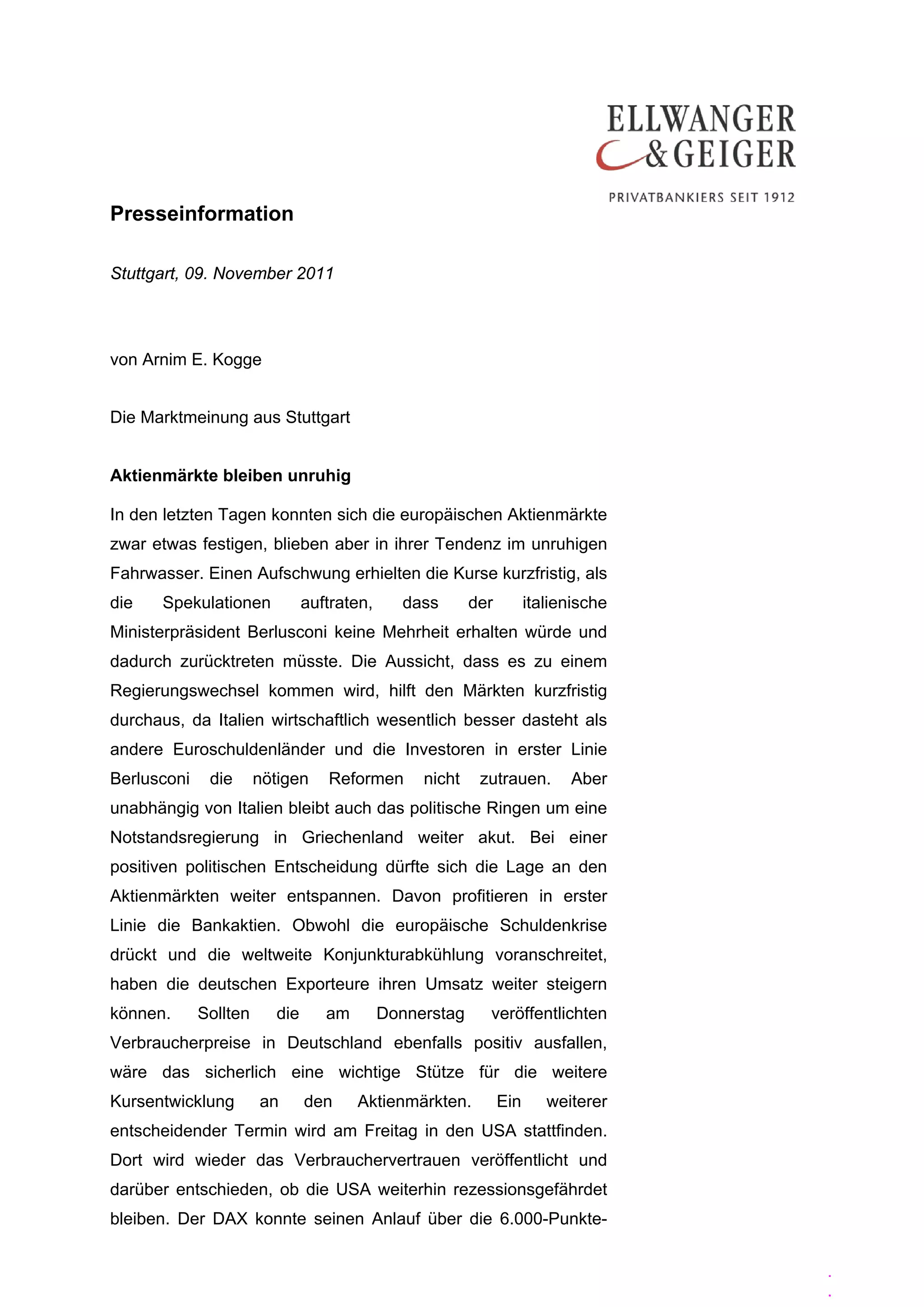 Die europäischen Aktienmärkte bleiben unruhig, trotz kurzfristiger Stabilisierung dank Spekulationen über einen möglichen Regierungswechsel in Italien. Eine positive politische Entscheidung in Griechenland könnte die Märkte weiter beruhigen, während die deutsche Wirtschaft voraussichtlich nur um 0,9% wachsen wird. Der DAX zeigt eine hohe Volatilität und könnte bei politischen Einigungen bis Jahresende auf 6.500 Punkte steigen, während Anleger vorsichtig bleiben und Rückschläge für Neukäufe nutzen sollten.