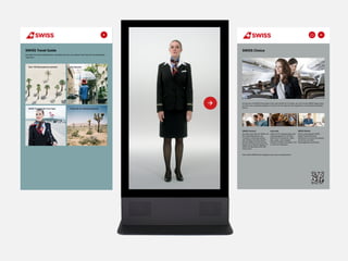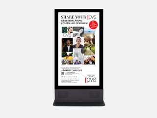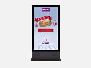 Das Dokument beschreibt ein digitales Werbe- und Unterhaltungssystem mit hochmodernen Touch-Terminals in verschiedenen Größen und Auflösungen. Es bietet eine cloud-basierte Softwarelösung für Content-Management, Verwaltung und Echtzeitüberwachung, sowie Interaktionsmöglichkeiten über verschiedene Technologien wie Touch und QR-Code. Das System richtet sich an B2B-Kunden und umfasst Lösungen für klassische Werbung, interaktive Inhalte und Commerce-Anwendungen.