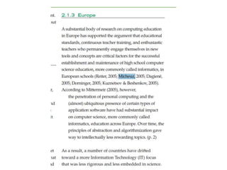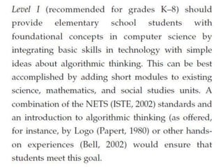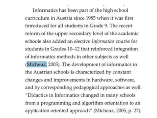 Das Dokument behandelt verschiedene Aspekte der Informationsverarbeitung und Pädagogik, insbesondere im Kontext mathematischer Standards und deren praktische Umsetzung. Es erwähnt wichtige Erklärungen und Konferenzen, die zur Entwicklung von Lehrplänen und Standards in der Sekundarstufe beigetragen haben. Zudem wird auf die Entstehung eines spezifischen Rahmenwerks im Jahr 2004 verwiesen.
