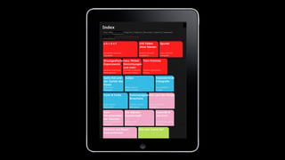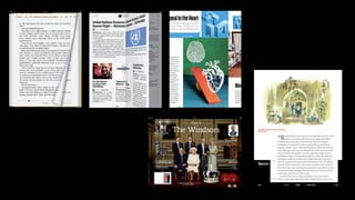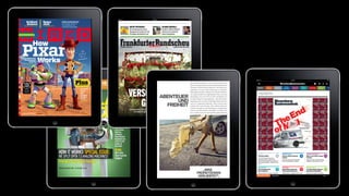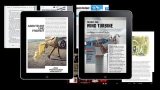 Das Dokument behandelt die Entwicklung und Herausforderungen des digitalen Publizierens mit Adobe DPS und InDesign für Tablets wie das iPad. Es thematisiert die Unterschiede zwischen Print- und Digitalmedien, die Notwendigkeit neuer Interaktionsmodelle sowie die Marktbedingungen und Kostenstrukturen für die Veröffentlichung digitaler Magazine. Außerdem werden Überlegungen zur Nutzererfahrung und verschiedenen Veröffentlichungskanälen angestellt.