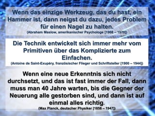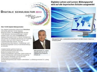 Das Dokument thematisiert die Herausforderungen und Chancen der digitalen Schulbildung, indem es verschiedene Zitate über Lehrmethoden und den Umgang mit Technologie in der Bildung anführt. Es wird deutlich, dass die Entwicklung von Technik und pädagogischen Ansätzen oft eine langsame Anpassung erfordert, während inspirierende Lehrkräfte den größten Einfluss auf das Lernen haben. Zudem werden zahlreiche Links zu weiteren Ressourcen und visuellen Darstellungen angeboten, um das Thema zu vertiefen.