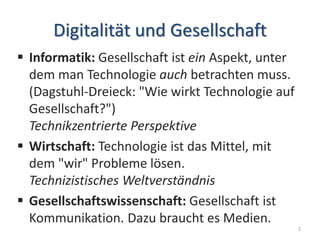 Das Dokument thematisiert die Rolle von Digitalität in der Bildung und betont die Notwendigkeit, Fähigkeiten zu entwickeln, die über traditionelle Arbeitsplätze hinausgehen, um gesellschaftliche Herausforderungen wie Klimawandel und Ungleichheit zu bewältigen. Es wird gefordert, kritisches Denken, Kreativität und interdisziplinäres Wissen zu fördern sowie ein lernendenzentriertes, projektorientiertes Lernmodell zu implementieren. Abschließend wird auf die Bedeutung von vernetztem Lernen und Communities of Practice hingewiesen.