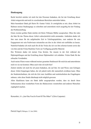 Die wissenschaftliche Arbeit von Patrick Engel analysiert das Slacklinen als aufstrebende und relativ neue Bewegungsform, die seit 2000 in Europa zunehmend Popularität erlangt hat. In der Arbeit werden die historische Entwicklung des Slacklinens, gesellschaftliche Veränderungen und deren Auswirkungen, sowie die Merkmale und Modelle von Trendsportarten untersucht. Zudem wird eine explorative Umfrage im deutschsprachigen Raum zur Sichtweise und zu den Erfahrungen von Slacklinern durchgeführt, um die zukünftige Entwicklung des Sports zu prognostizieren.