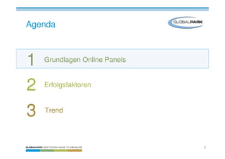 Der Dokument beschreibt die Grundlagen und Erfolgsfaktoren von Online-Panels sowie die Nutzung von Kundenfeedback in diesen Panels. Es wird erläutert, wie durch effizientes Management, die richtige Rekrutierung von Teilnehmern und effektive Kommunikation eine hohe Datenqualität sichergestellt werden kann. Zudem wird die Evolution der Kundenfeedbackgemeinschaft und deren Einfluss auf vertrauensvolle Kundenbeziehungen hervorgehoben.
