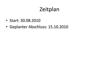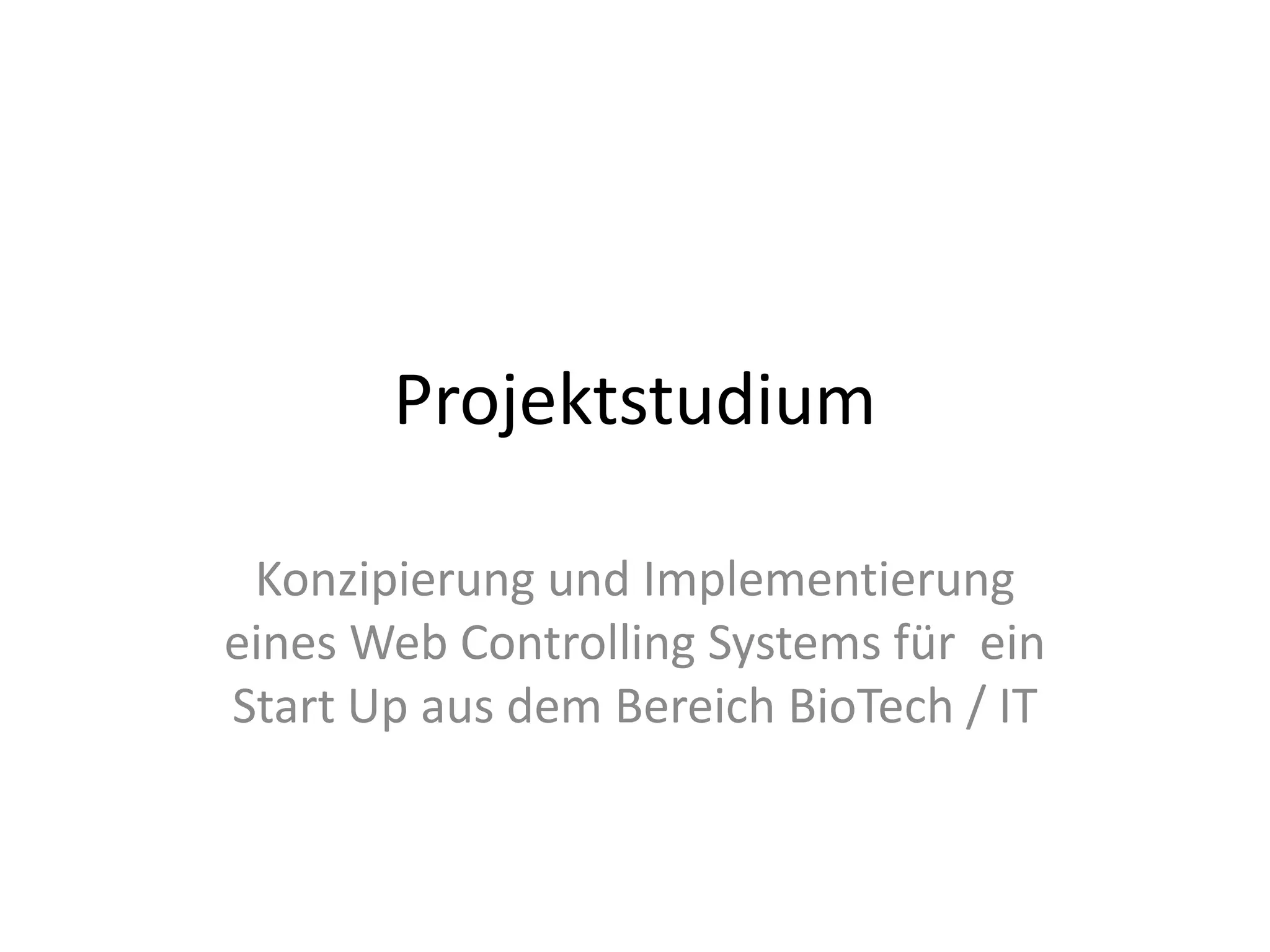 Das Dokument beschreibt ein Projektstudium zur Entwicklung eines Web-Controlling-Systems für ein Start-up im Bereich Biotech/IT, das von 30. August 2010 bis 15. Oktober 2010 laufen soll. Es thematisiert die Messung und Analyse von Internet-Daten zur Optimierung der Webnutzung und wird in vier Hauptbereiche unterteilt: Web/Homepage, E-Mail/Newsletter, Video/Webinare und Social Media. Es werden spezifische Metriken wie Click-Through-Rates und Öffnungsraten behandelt, um die Effektivität der verschiedenen Kanäle zu bewerten.
