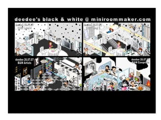 Das Dokument listet verschiedene Farben und Themen, die mit 'deedee' in Verbindung stehen, einschließlich Farbkombinationen wie grün, gelb, blau und pink sowie schwarz-weiße Designs. Es enthält auch Ankündigungen zu verschiedenen Ereignissen und Feiern wie einem Wiedersehen und Neujahrsgrüßen. Die Informationen scheinen von einer Website namens miniroommaker.com zu stammen.