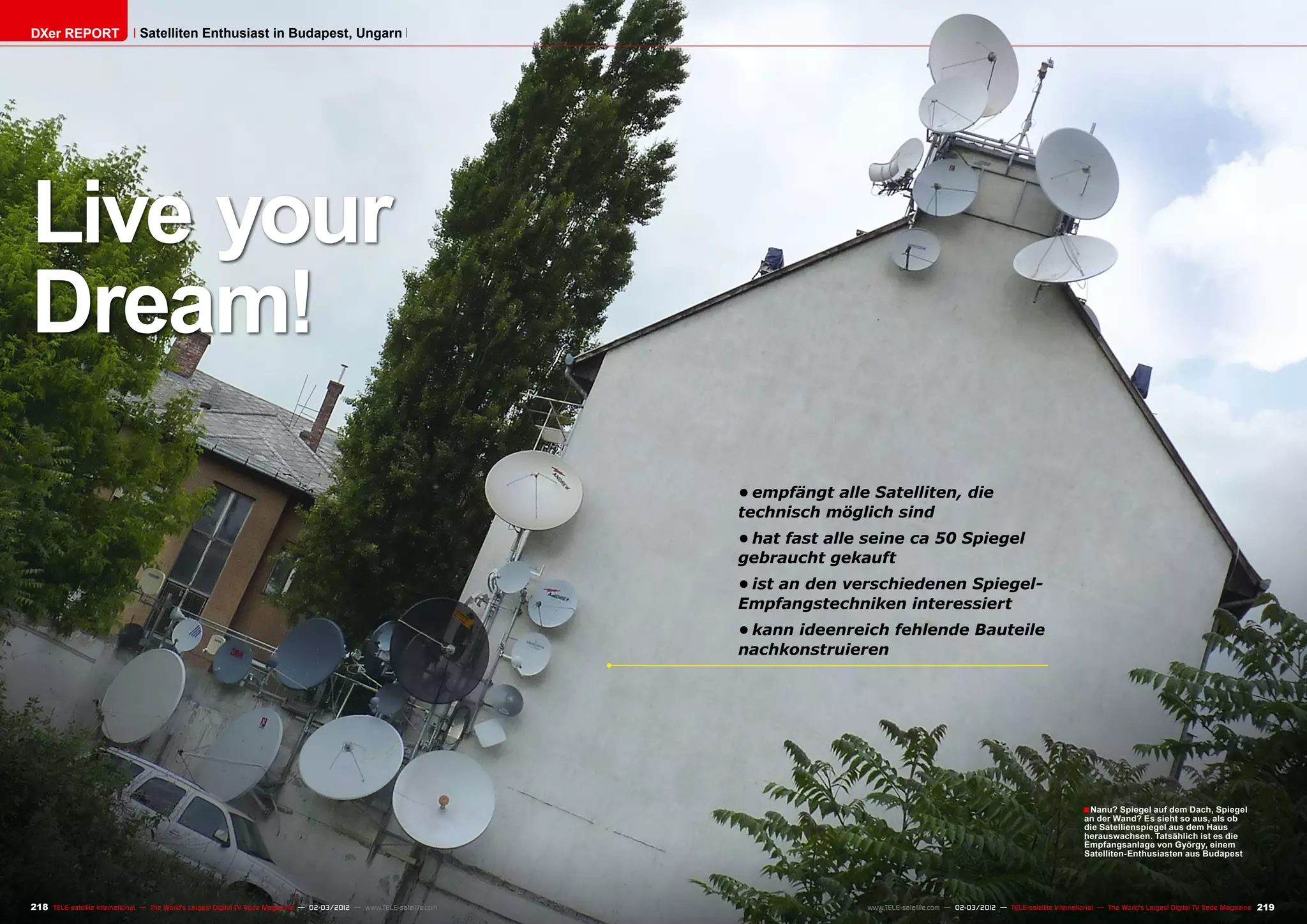 György, ein Satelliten-Enthusiast aus Budapest, hat auf seinem Dach 11 Spiegel installiert und besitzt zusätzlich viele weitere im Innen- und Außenbereich seines Hauses. Er ist fasziniert von der Technik des Satellitenempfangs und repariert sowie konstruierte die benötigten Bauteile oft selbst, wobei er vorwiegend gebrauchte Komponenten erwirbt. Sein Ziel ist es, seine Empfangsanlage ständig zu erweitern und die Funktionsweise alter Technologien an moderne Standards anzupassen.