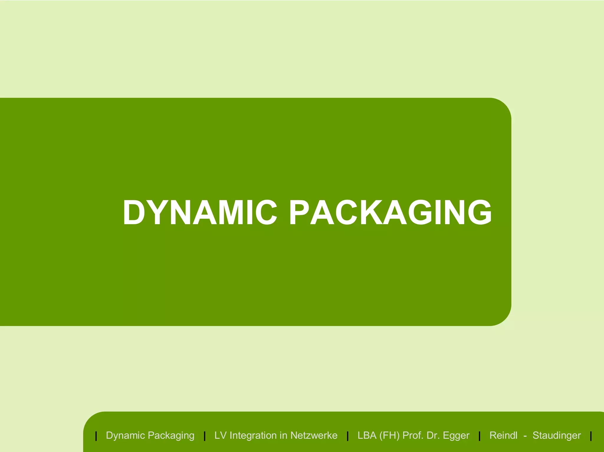 Dynamic Packaging bezeichnet den in Echtzeit erfolgenden Prozess der individuellen Zusammenstellung und Buchung von Reisekomponenten aus verschiedenen Quellen zu einem Gesamtpreis. Es gibt jedoch nur wenige Anbieter, die echtes Dynamic Packaging anbieten, und dessen Marktbedeutung ist in Europa und den USA begrenzt. Kontroversen bestehen darüber, ob individuelles Dynamic Packaging tatsächlich ein Kundenbedürfnis darstellt und ob es für kleine und mittelständische Unternehmen praktikabel ist.
