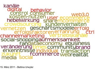 Das Dokument beschreibt die Veränderungen im E-Commerce, insbesondere in Bezug auf das Kundenverhalten und die Geschäftsanforderungen im digitalen Zeitalter. Es betont die Notwendigkeit, die Kundenbindung zu vertiefen, Konversionsraten zu optimieren und neue Technologien sowie Social Media strategisch zu nutzen. Zudem werden spezifische Maßnahmen und Strategien vorgestellt, die Unternehmen wie Betty Bossi ergreifen können, um im E-Commerce erfolgreich zu sein.
