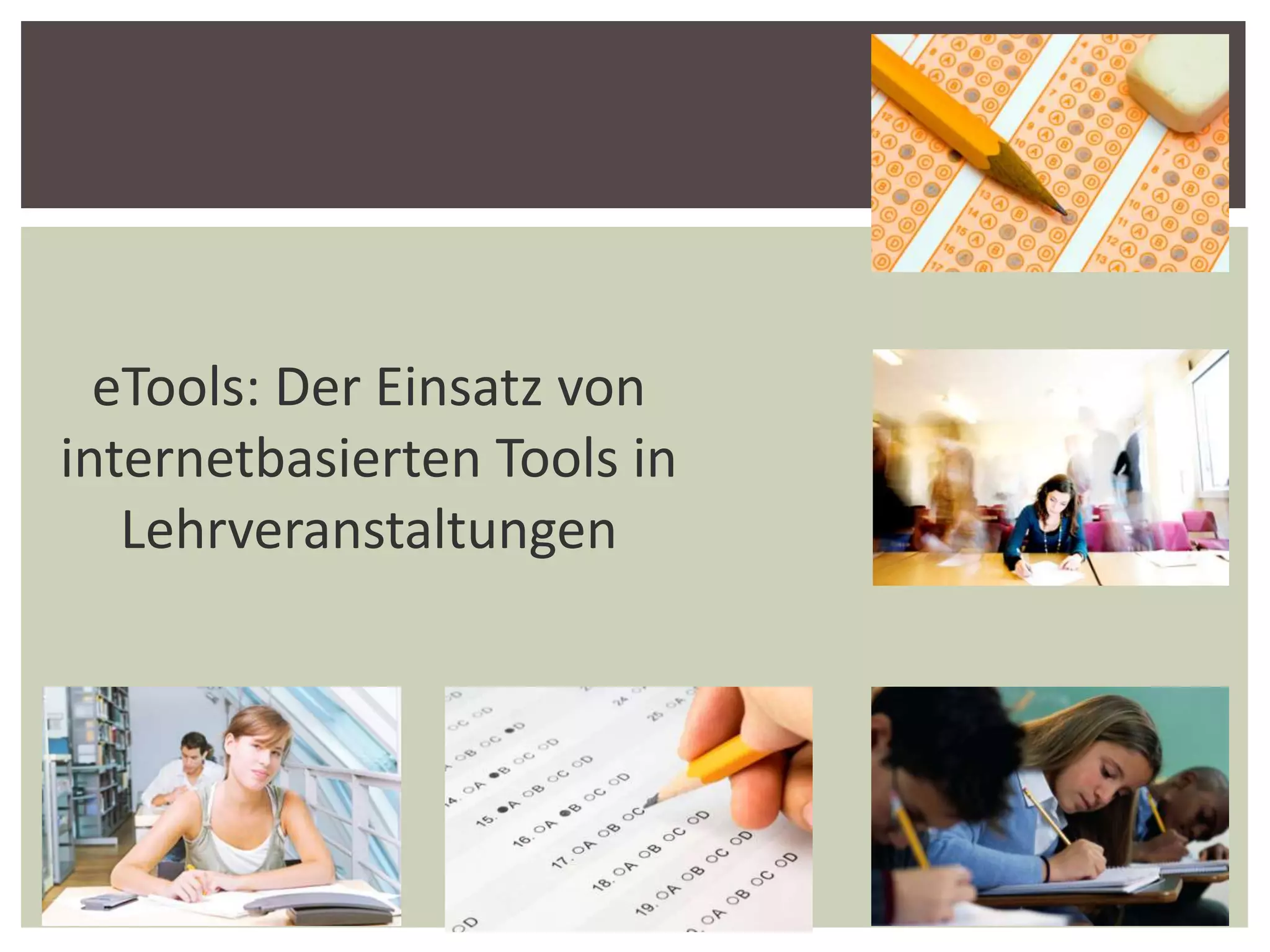 Das Dokument behandelt den Einsatz von internetbasierten Tools (etools) in Lehrveranstaltungen und thematisiert Selbstreguliertes Lernen im Hochschulkontext. Es werden verschiedene etools und deren Anwendung sowie didaktische Ansätze wie Instruktion und Konstruktion vorgestellt. Zudem sind praktische Übungen und Diskussionen zur Reflexion dieser Themen Bestandteil des Workshops.