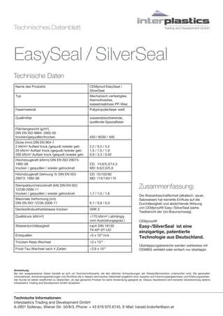 Cemproof® easyseal und silverseal sind mechanisch verfestigte Polypropylen-Vliese, die mit wasserreaktiven Polymeren imprägniert sind und eine extrem effektive Abdichtung für Bauwerke bieten. Sie zeichnen sich durch selbstheilende Eigenschaften aus, gewährleisten dauerhaften Schutz vor eindringendem Wasser und sind einfach zu verlegen, ohne spezielle Geräte oder Fachpersonal. Diese Produkte sind vielseitig einsetzbar und können alle konventionellen Abdichtungsoptionen ersetzen, selbst in salzwasserbelasteten Bereichen.