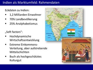 Der indische Ebook-Markt ist stark emergent mit einer geringen digitalen Medienpräsenz von 3-5%, jedoch mit hohen Wachstumsraten und Aussicht auf Chancen, insbesondere bei der jüngeren, urbanen Generation. Trotz Herausforderungen wie Piraterie, bürokratische Hürden und ein preissensibler Markt, treiben die steigenden Smartphone-Verkäufe und die Modernisierung des Bildungssystems die Digitalisierung voran. Europäische Anbieter haben Potenzial, wenn sie auf Englisch publizieren.