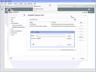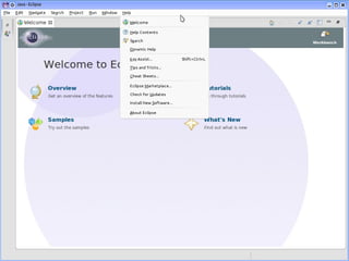 Das Dokument beschäftigt sich mit der Erweiterung von Eclipse durch verschiedene Plug-ins, die die Portabilität und Nutzung in heterogenen Umgebungen verbessern. Es werden mehrere Plug-in-Vorschläge wie Android Development Tools, JBoss Tools und Mylyn Connector vorgestellt. Zudem wird auf die Bedeutung der Integration und Nutzung von Tools in der Eclipse-Umgebung hingewiesen.