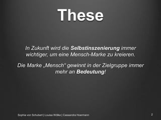 Die Selbstinszenierung wird zunehmend bedeutend, um eine menschliche Marke zu schaffen, da traditionelle Medien an Einfluss verlieren und emotionale Ansprache unerlässlich wird. Um sich erfolgreich zu vermarkten, sollten Individuen ihre Stärken verdeutlichen, einen Standpunkt einnehmen und personalisierte Erlebnisse kreieren. Ego-Marketing wird als unerlässlich für die Zukunft angesehen, da es die Wahrnehmung als Marke und Problemlöser fördert.